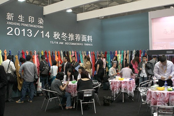 新生此次主要展示了T/R、针织、天丝、全涤、交织五大类产品。展馆布置新颖特别,一改平时呆板的面板墙面,采用印有公司代表产品的透明广告布。伴着淡淡的意大利风味现磨咖啡的优雅香味与柠檬菊花泡制的清新茶香,客人在各个面料展示区域内挑选着自己需要的面料,身着统一工作服的工作人员精神抖擞、面带微笑,在客人旁边帮助记录他们的需求信息,并随时提供帮助服务。 天宇&华仑