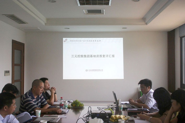 本报讯 8月25日,由国家纺织产品开发中心主任李斌红、国家纺织产品开发中心产品事业部业务发展经理谢晓英、品牌推广经理李雷、研究员张静组成的评估小组一行对三元控股集团国家印染产品开发基地资质进行实地复评。集团副总经理王炜组织了复评汇报工作。