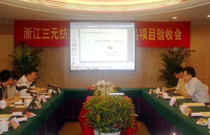 本报讯 7月31日,浙江省省级工业新产品开发项目“液氨整理生态麻休闲面料”验收会在萧山金马饭店举行,该项目备案号为浙经信技备字(2009)204号文件,编号200905AB0031,由三元控股集团下属浙江三元纺织有限公司承担开发任务。项目验收会由萧山区经济发展局组织,参加验收会的有浙江理工大学汪澜、陈文兴教授、东华大学毛志平教授、萧山区经发局倪国田副局长、以及三元控股集团副总王炜、三元纺织销售总监李益民等。