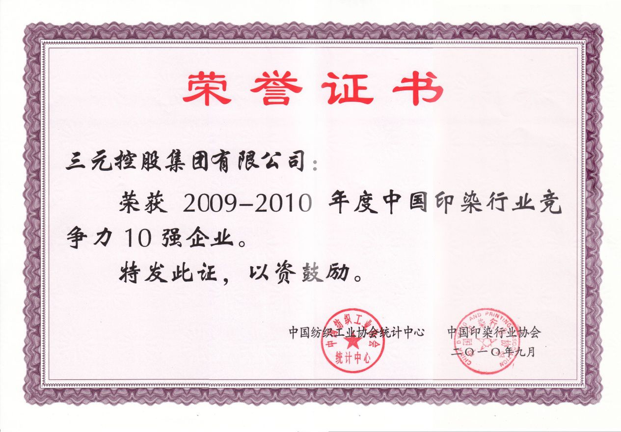 大会发布了2009-2010年度中国纺织服装企业竞争力500强企业名单,全行业主营业务收入、出口100强企业名单,棉纺(色织)行业20强、毛纺、化纤、麻纺、丝绸、印染、针织、服装行业10强企业名单,并对入围企业进行了表彰。三元控股荣获“2009-2010年度中国纺织服装企业竞争力500强企业”、“2009中国纺织服装行业主营业务收入100强企业”、“ 2009-2010年度中国印染行业竞争力10强企业”多项荣誉称号。中国纺织企业竞争力测评指标体系主要由基础数据标准值和人气指标标准值两大类元素构成。其中,基础数据标准值由人力素质、资产素质、快速反应能力、创新能力、盈利能力、规模水平、增长能力、社会责任等多个子系统组成。三元控股集团入围了“2009~2010年度中国纺织服装企业竞争力500强”和“2009~2010年度中国印染行业竞争力10强企业”,这标志着我集团在做精做细、做大做强,做优秀的高品质绿色生态型健康环保面料的供应商,提升企业竞争力和品牌美誉度上,以及推动印染行业新潮流等方面,取得了新的成就。