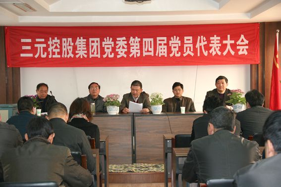 本报讯 3月10日下午1点,在庄严的国歌声中,集团党委隆重召开中共三元控股集团党委第四届党员代表大会,来自集团和各子公司13个党支部的59名党员代表及区企业党建工作指导员周水荣同志和党湾镇党委委员、换届选举工作领导小组联络员朱权华同志参加了此次大会。大会听取和审议了上届党委工作总结报告,选举产生了第四届中共三元控股集团委员会和第二届纪律检查委员会。